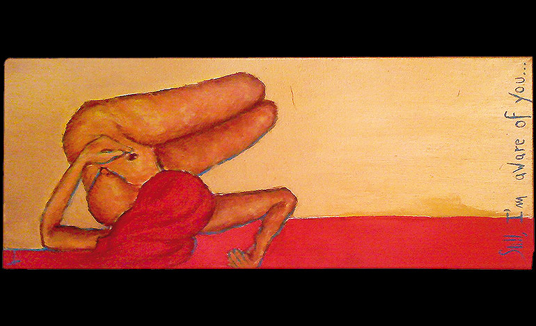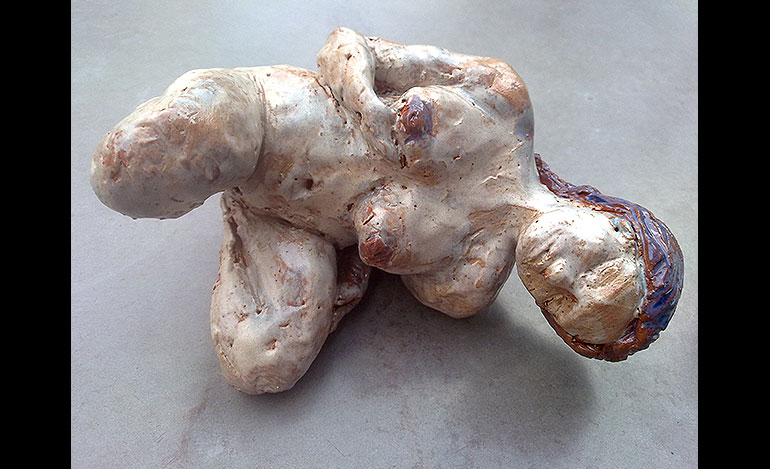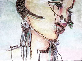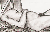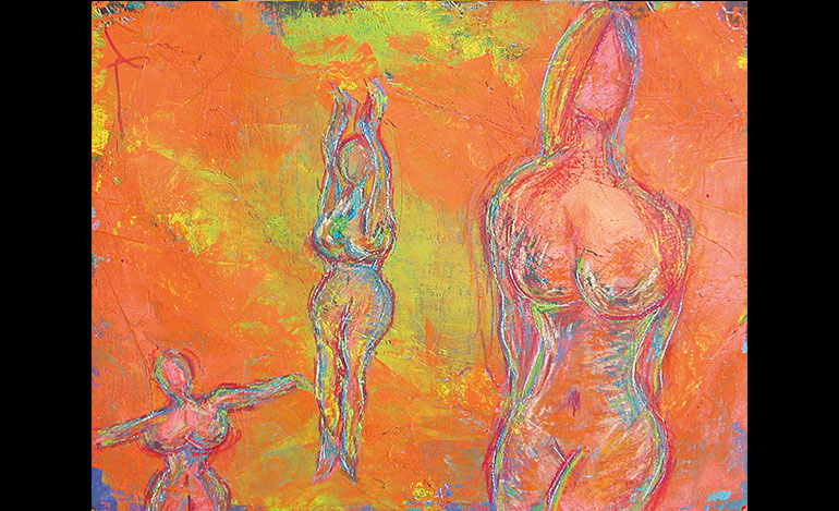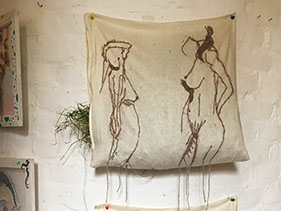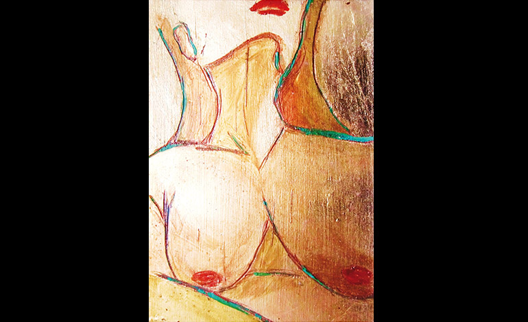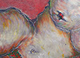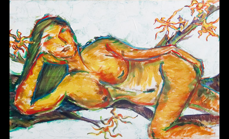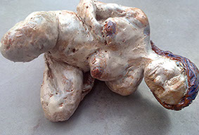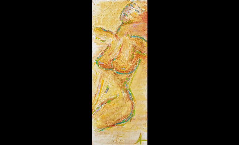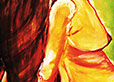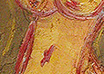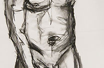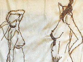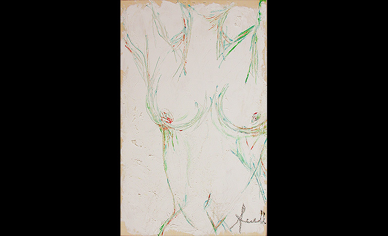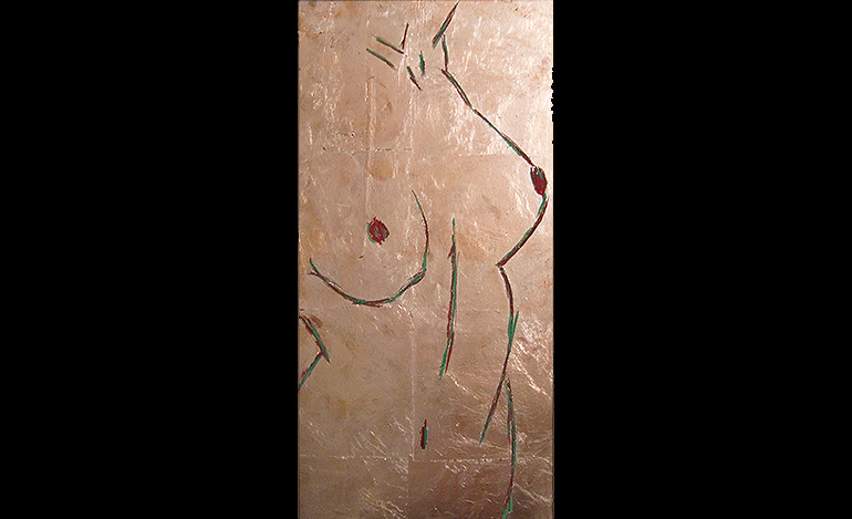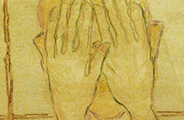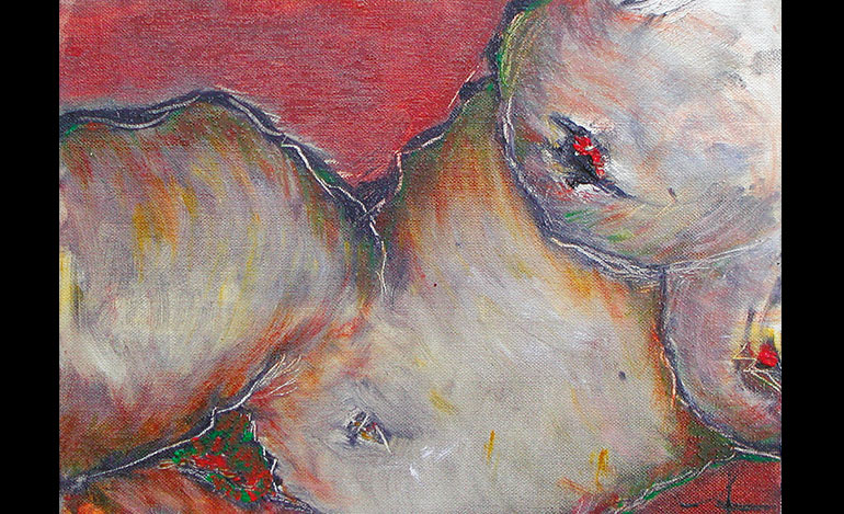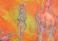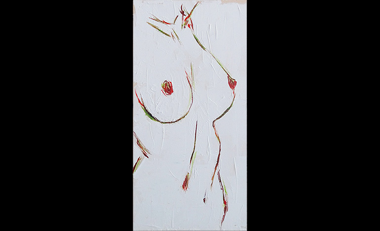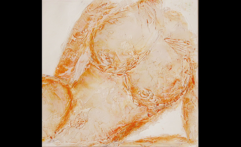 Lucilla Trapazzo paints bodies and body parts mostly in earth colors. Her technique varies from oil and pastels to the use of modeling paste and found materials as canvasses.