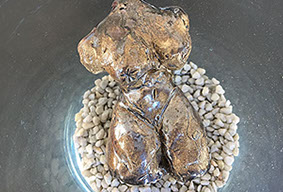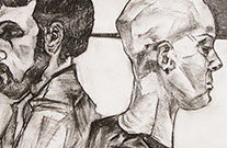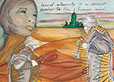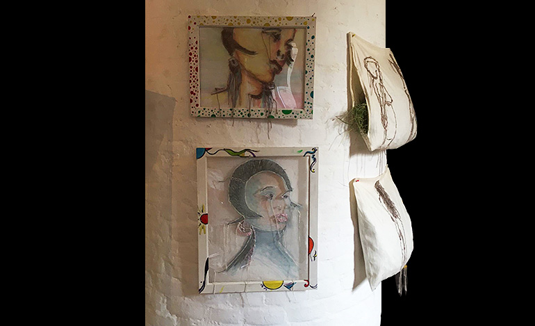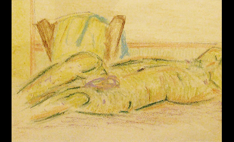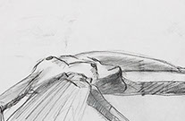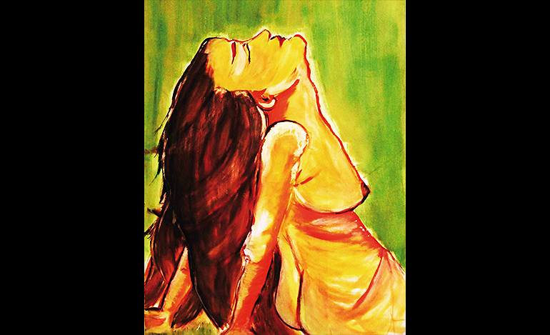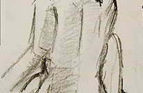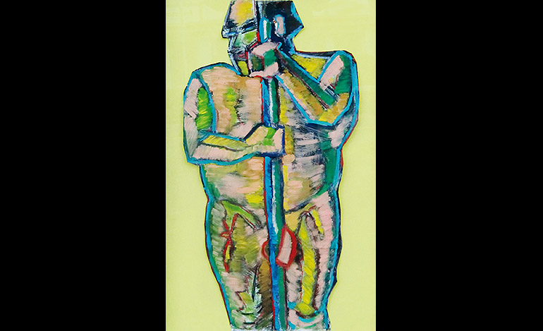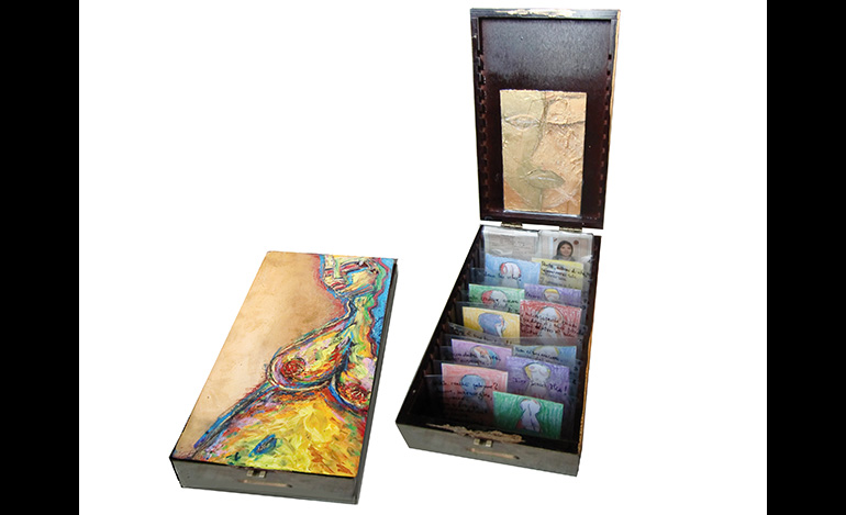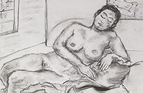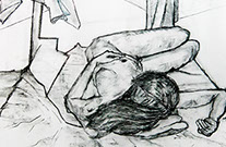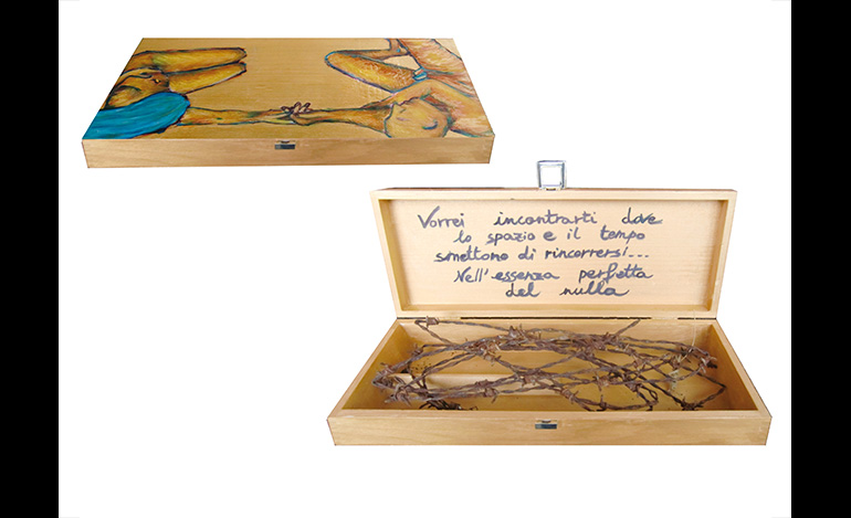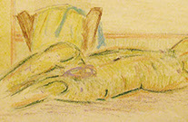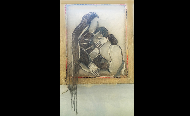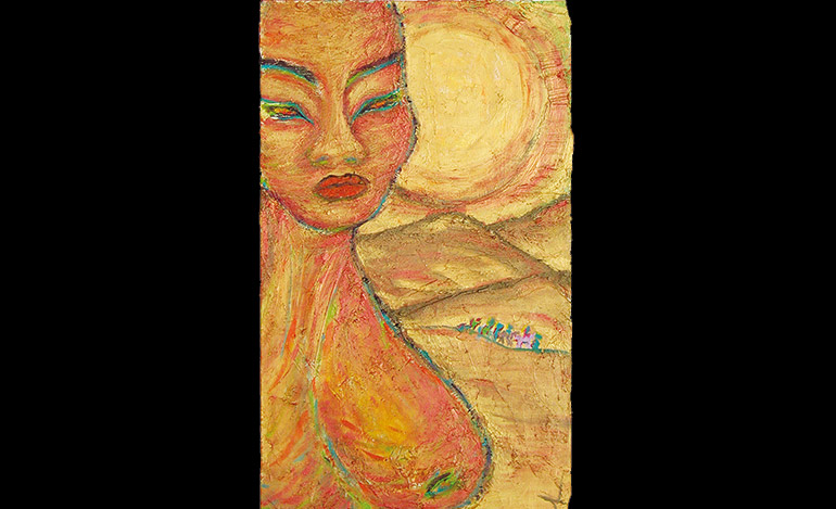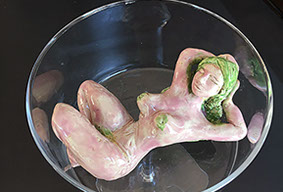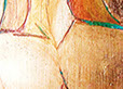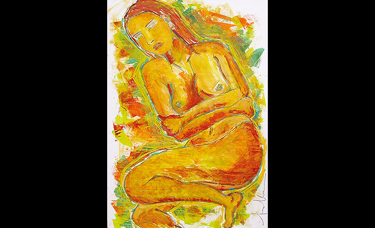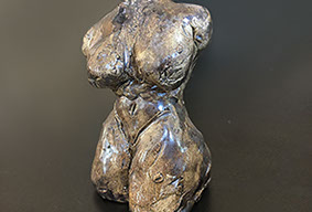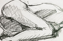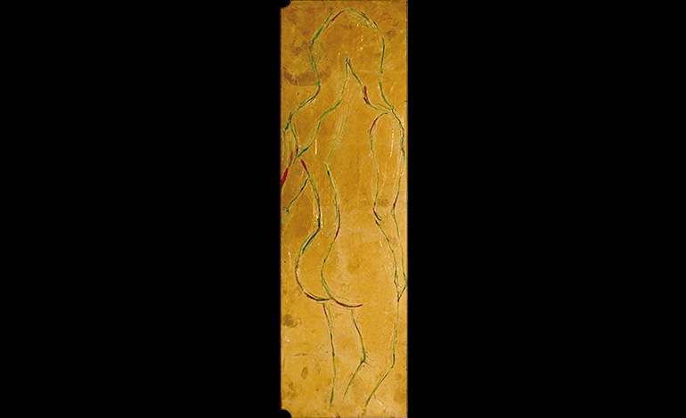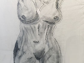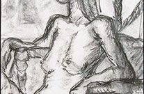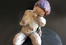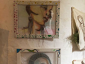 Lucilla Trapazzo paints bodies and body parts mostly in earth colors. Her technique varies from oil and pastels to the use of modeling paste and found materials as canvasses.