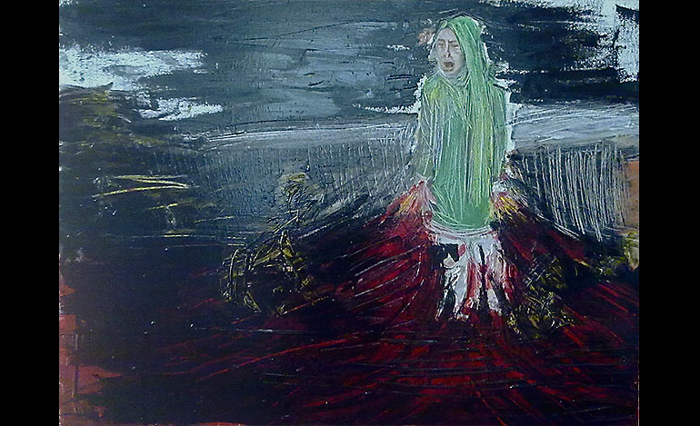Her works are a synthesis of urgency of expression and inward looking. With rough brush strokes and nervous carving of edges Lucilla Trapazzo's paintings depictmoments of solitary and intimate inner landscapes.